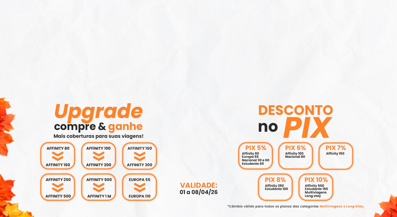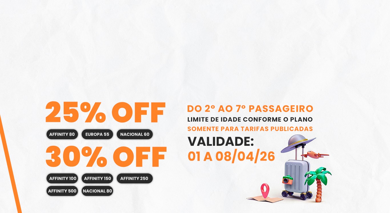 Recomendamos que a compra do seguro viagem seja feita no início do planejamento da sua viagem, seja para pacotes, passagens aéreas, cruzeiros ou viagens rodoviárias. Você não irá pagar mais caro por isso e irá garantir a cobertura de Cancelamento de Viagem Plus Reason. Saber que está protegido desde o início, garante mais tranquilidade para você aproveitar sua viagem ao máximo.