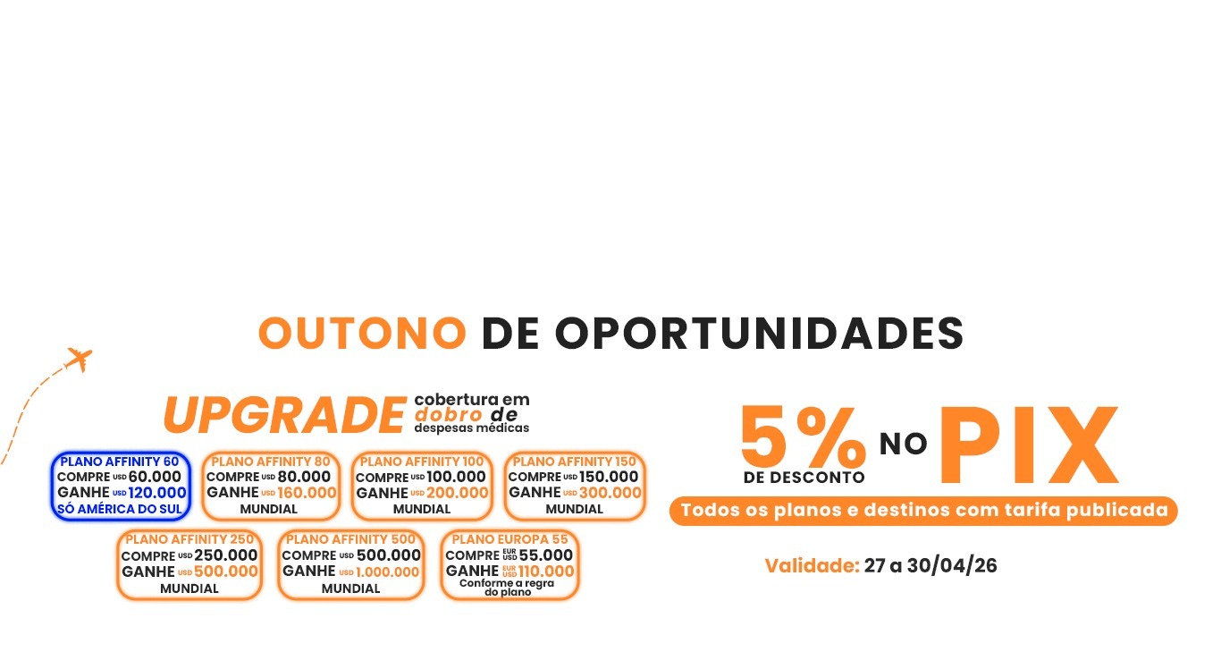 Recomendamos que a compra do seguro viagem seja feita no início do planejamento da sua viagem, seja para pacotes, passagens aéreas, cruzeiros ou viagens rodoviárias. Você não irá pagar mais caro por isso e irá garantir a cobertura de Cancelamento de Viagem Plus Reason. Saber que está protegido desde o início, garante mais tranquilidade para você aproveitar sua viagem ao máximo.